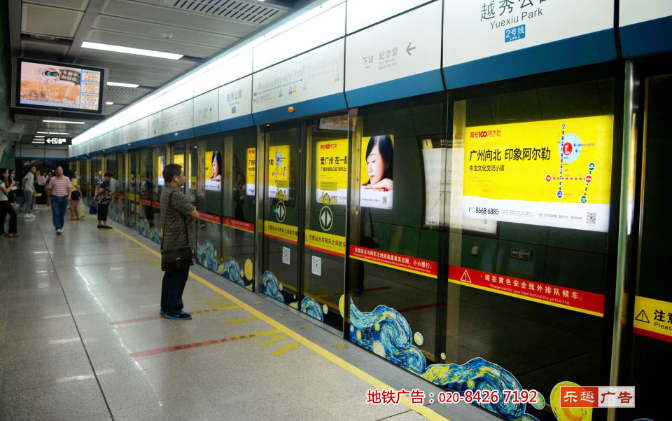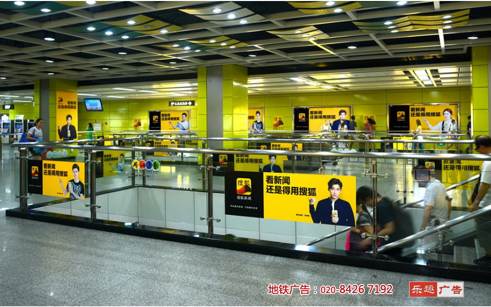 全国城市地铁广州报站语音广告、出口向导说明广告。